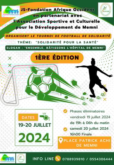 C'est avec une grande fierté et une profonde gratitude que nous nous réunissons aujourd'hui pour célébrer ce tournoi de football de solidarité, un événement qui dépasse le cadre du sport pour se transformer en une véritable démarche humanitaire et communautaire. Nous avons tous répondu présents pour soutenir une noble cause : la construction de notre nouvel hôpital à Memni. Cet hôpital, c’est plus qu’un bâtiment. C’est un symbole d’espoir, de progrès et de solidarité pour notre village. Il est le reflet de notre engagement collectif envers un avenir meilleur, où chaque membre de notre communauté pourra bénéficier de soins de qualité, tout près de chez nous. Aujourd’hui, les fonds récoltés grâce à ce tournoi seront entièrement dédiés à deux objectifs cruciaux :