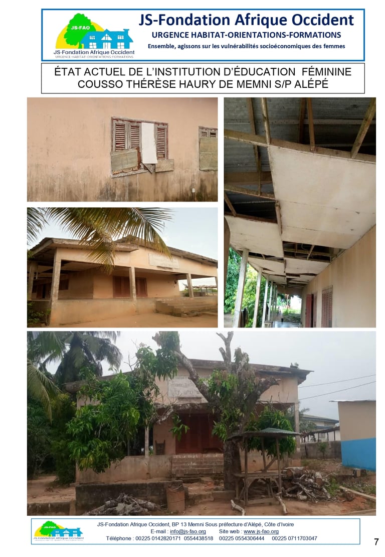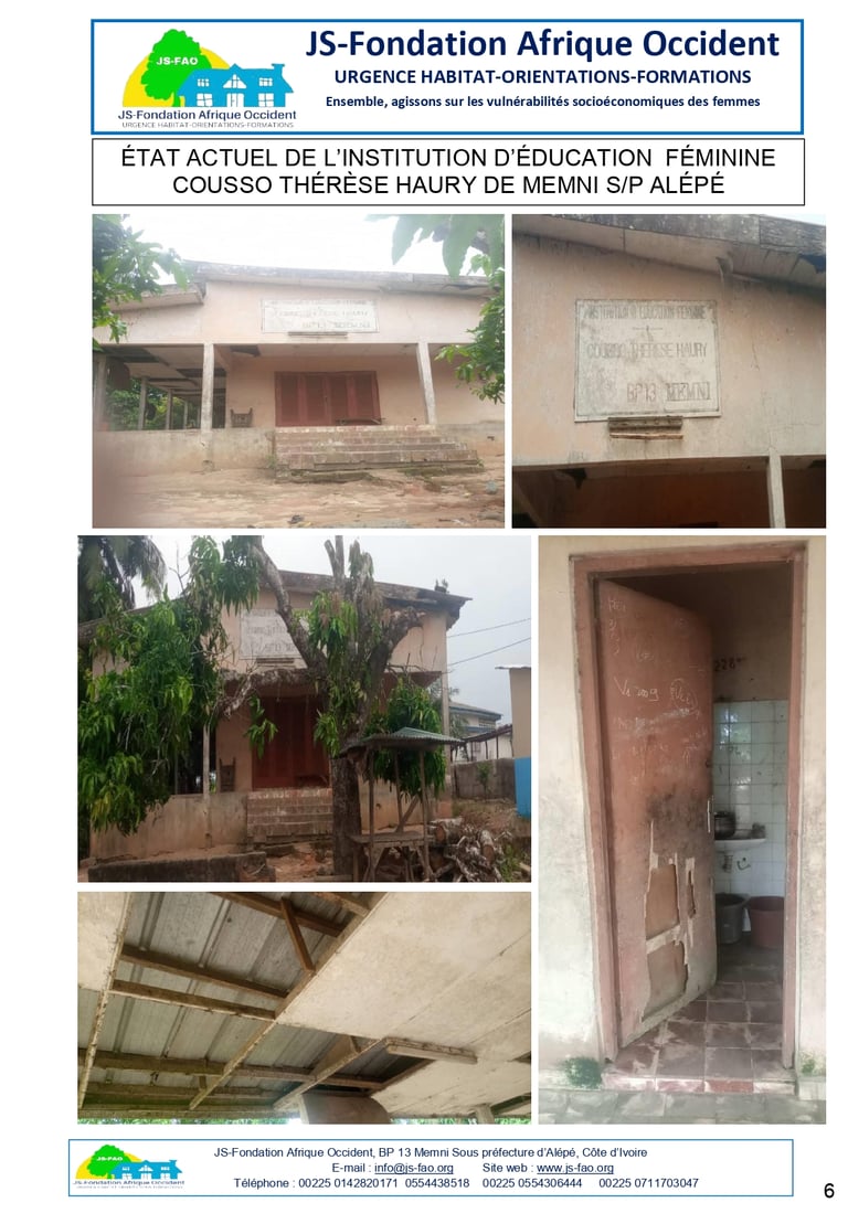 RÉHABILITATION DE L'INSTITUTION D'ÉDUCATION FÉMININE COUSSO THÉRÈSE HAURY DE MEMNI ET LE FOYER DES JEUNES DE MEMNI